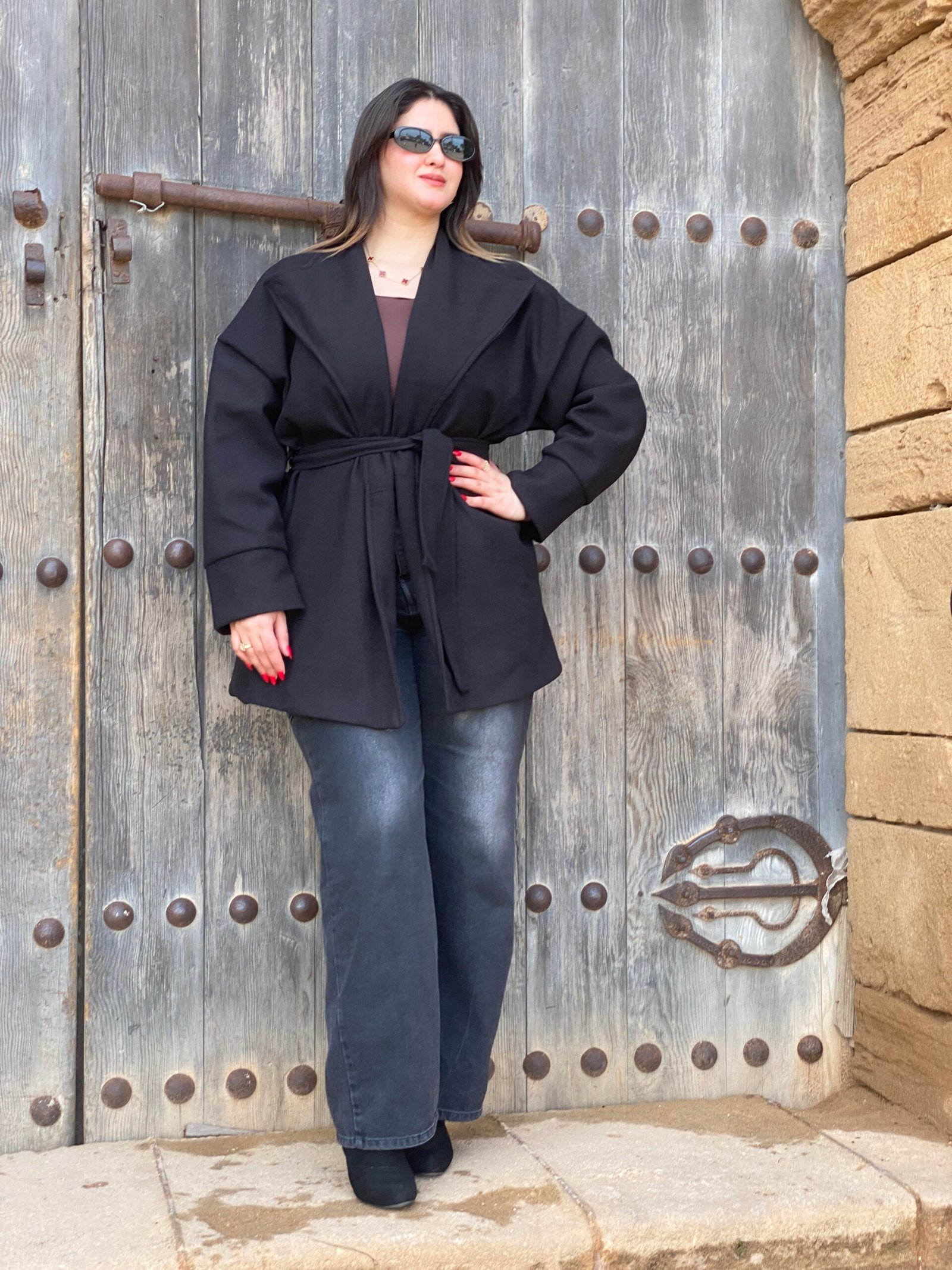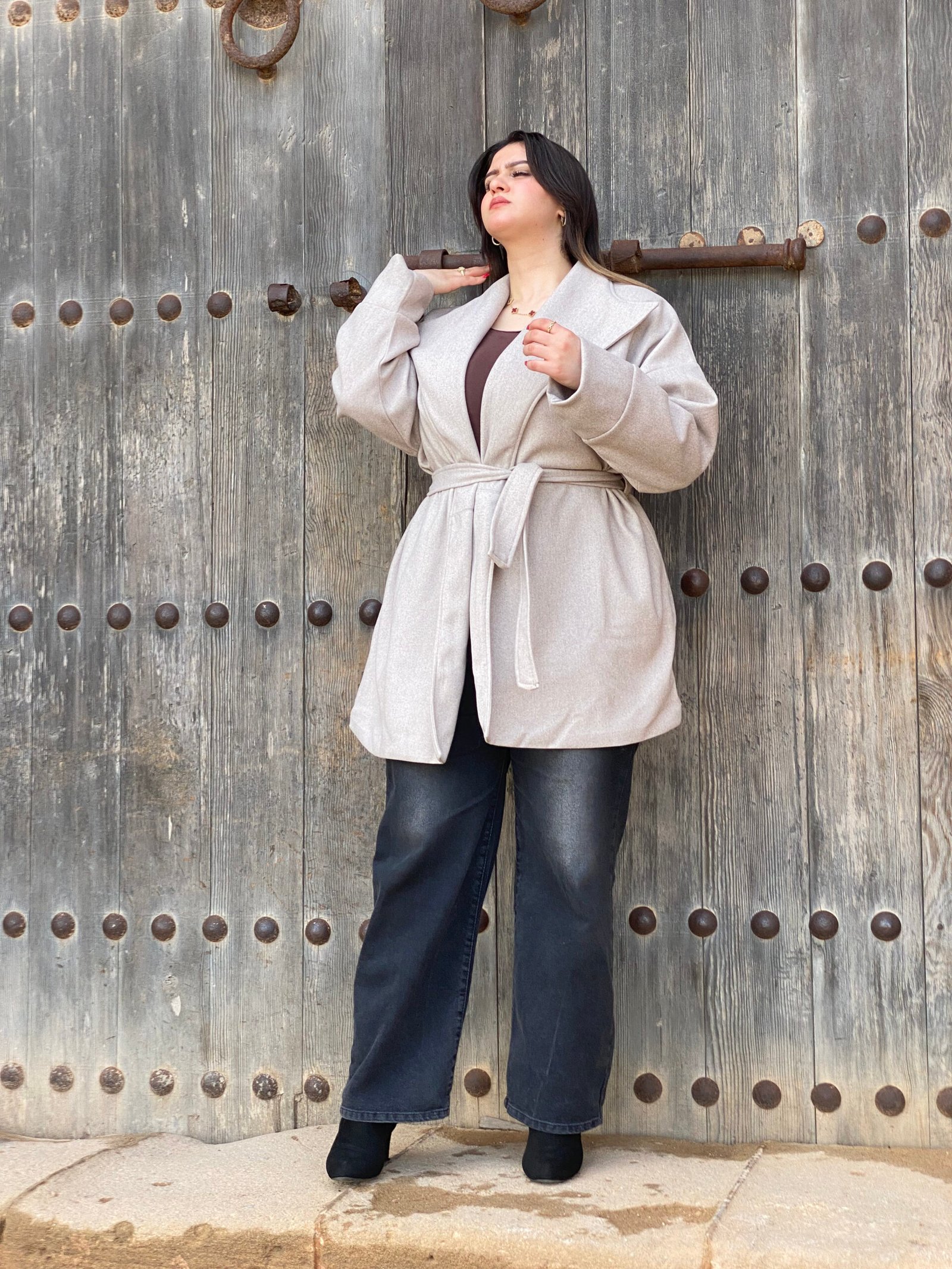 Ce manteau court ceinturé incarne une allure moderne et affirmée, tout en offrant un confort optimal pour la saison froide. Sa coupe légèrement ample, sublimée par une ceinture ajustable à la taille, permet de structurer la silhouette tout en conservant une grande liberté de mouvement.